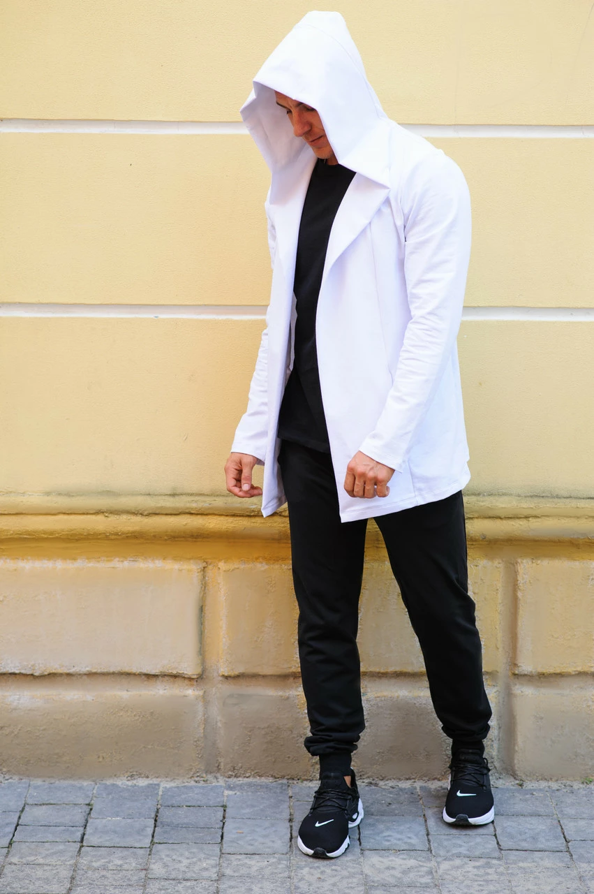 Белая мантия с капюшоном + черные спортивные штаны мужские (комплект)