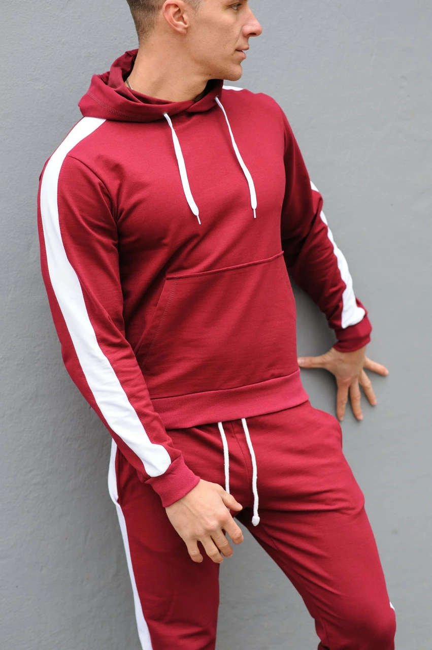 Бордовая худи с лампасами (толстовка с капюшоном, кофта, кенгурушка)