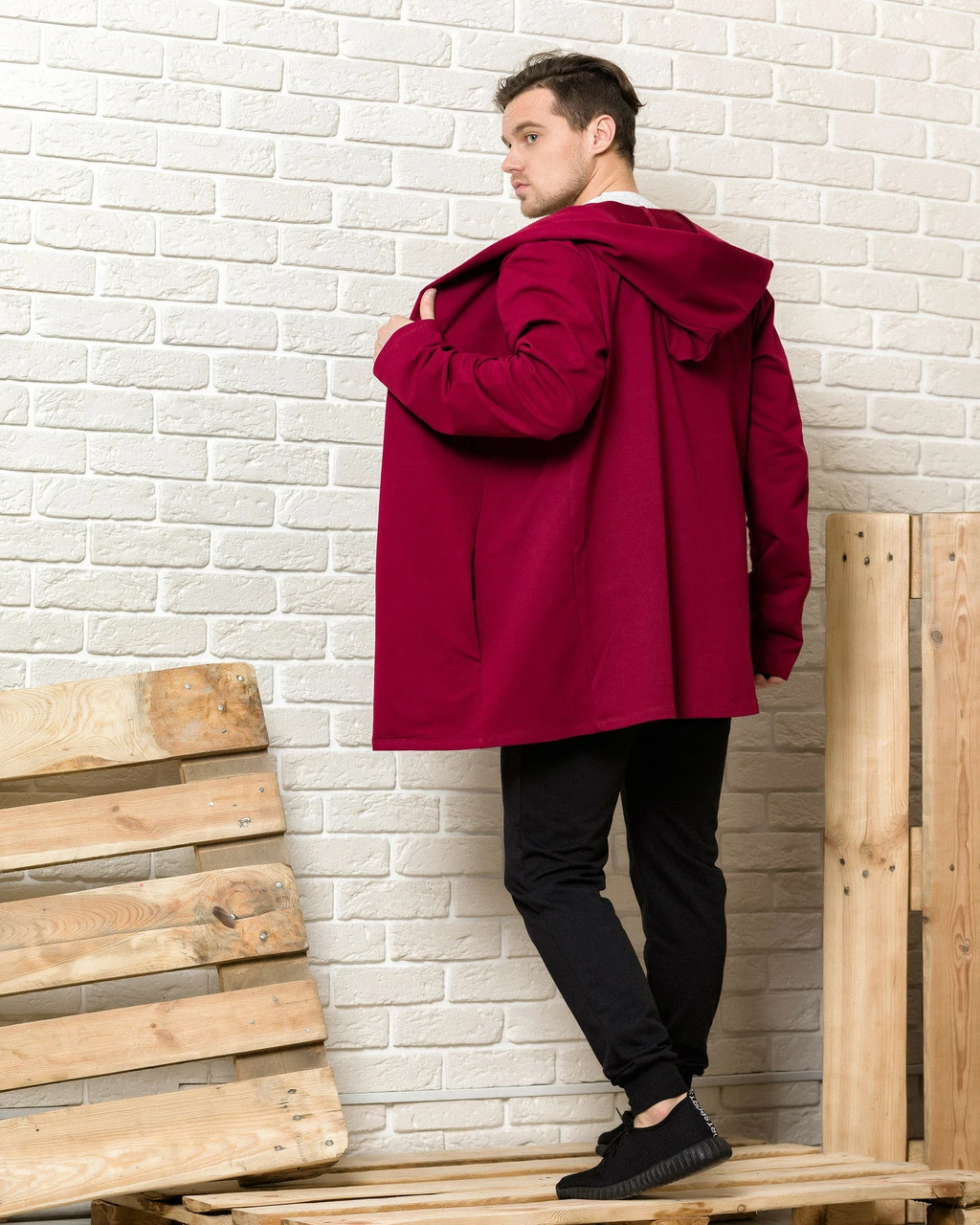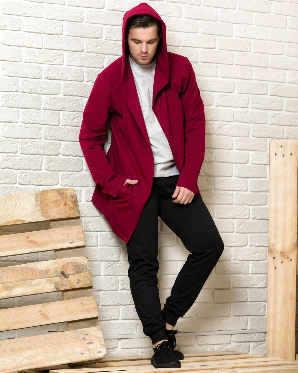 Бордовая мантия с капюшоном + черные мужские спортивные штаны (комплект)