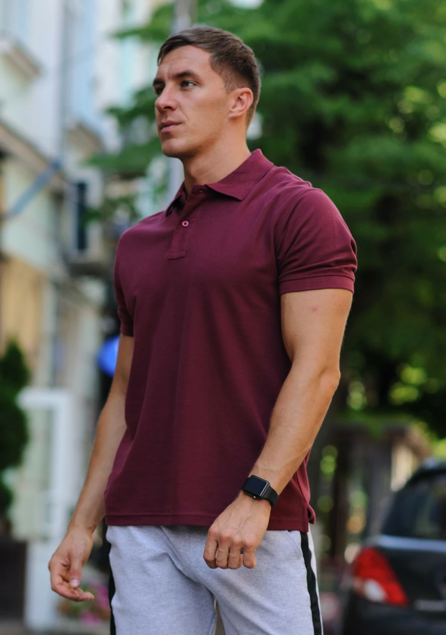 Бордовая мужская футболка поло / купить рубашку поло