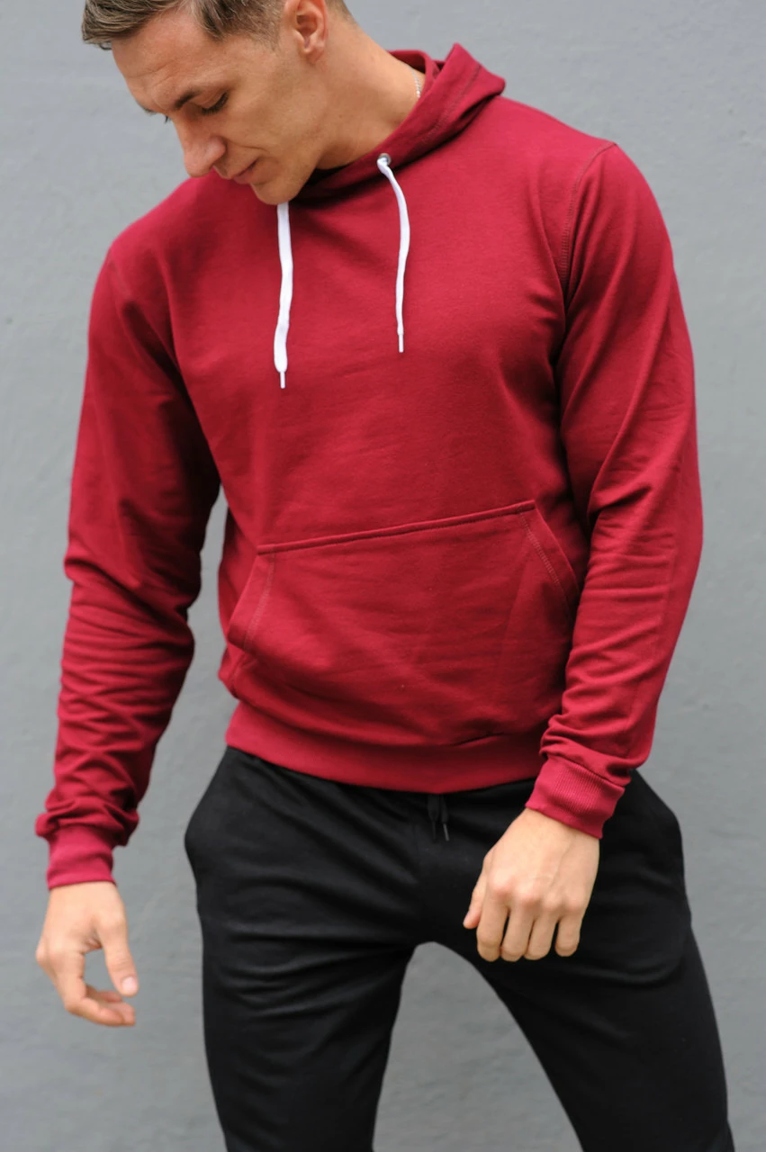 Бордовая мужская толстовка (худи с капюшоном, кофта, кенгурушка)