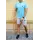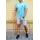 Голубая футболка и светло-серые шорты с брендами (Nike, Adidas, Reebok, Under Armour, Jordan, Fila, Puma)