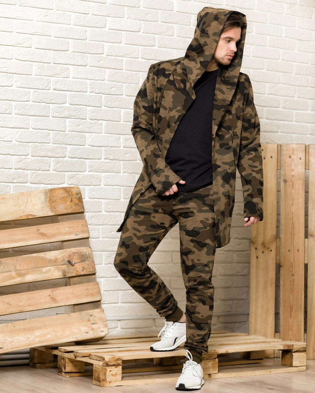 Камуфляжная мантия с капюшоном + камуфляжные спортивные штаны мужские (комплект)
