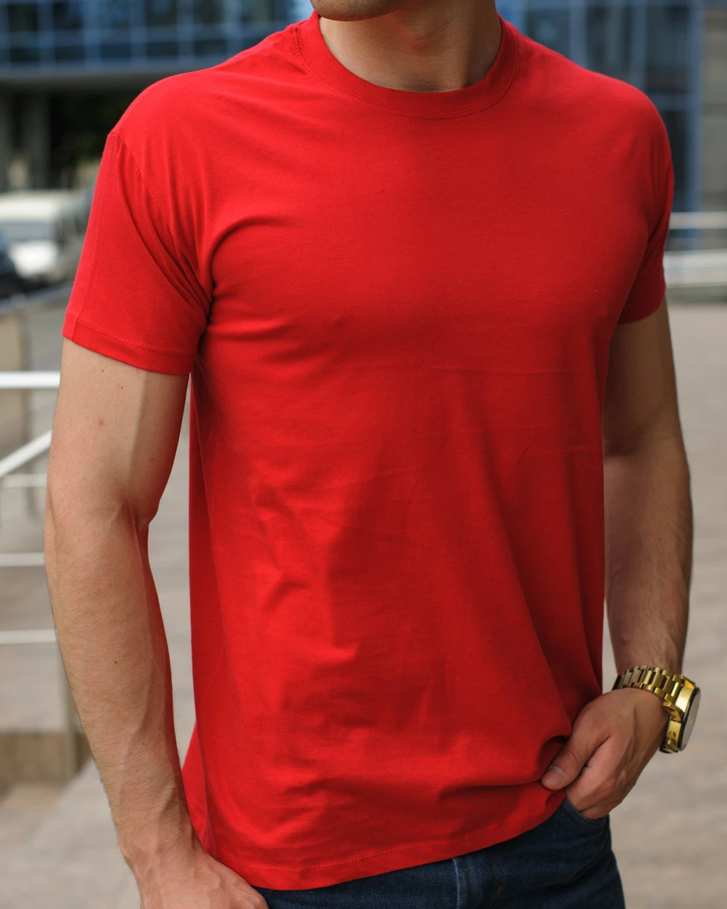 Красная мужская футболка / однотонные хлопковые футболки