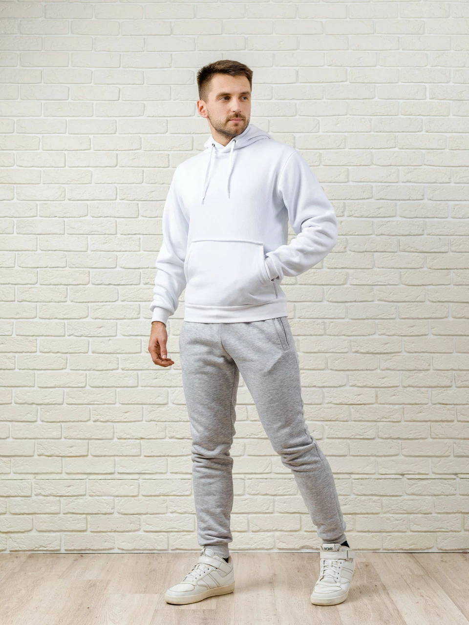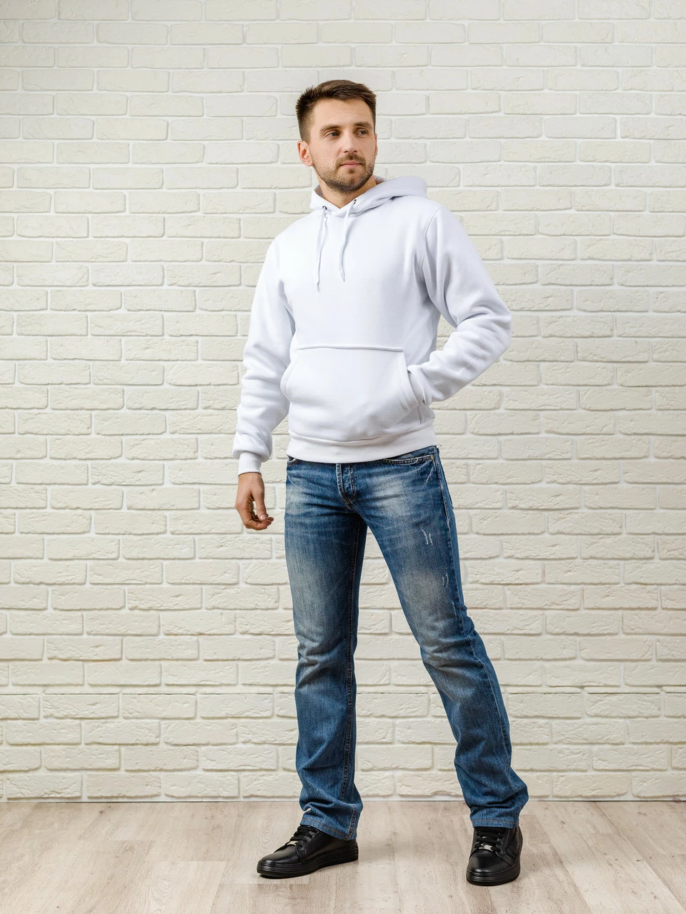 Мужская толстовка с капюшоном теплая белая, худи, кофта, кенгурушка / ОСЕНЬ-ЗИМА