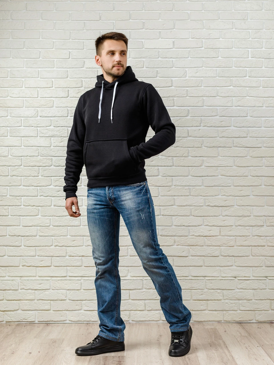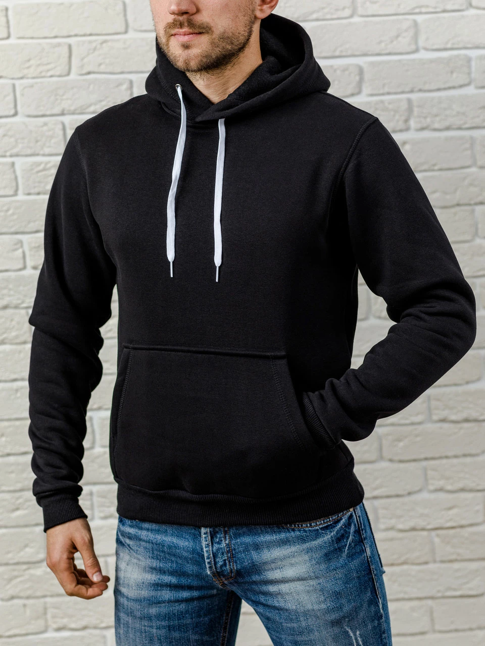 Мужская толстовка с капюшоном, теплая черная худи, кофта, кенгурушка / ОСЕНЬ-ЗИМА