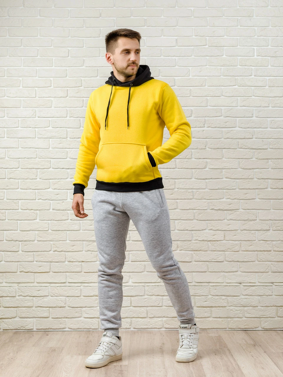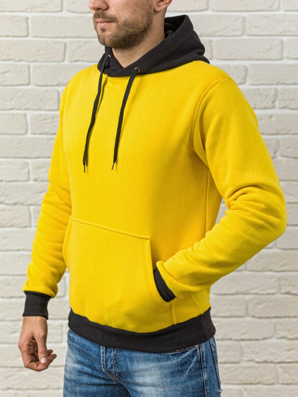 Мужская толстовка с капюшоном теплая - эксклюзивный дизайн худи: желто-черная, кофта, кенгурушка / ОСЕНЬ-ЗИМА