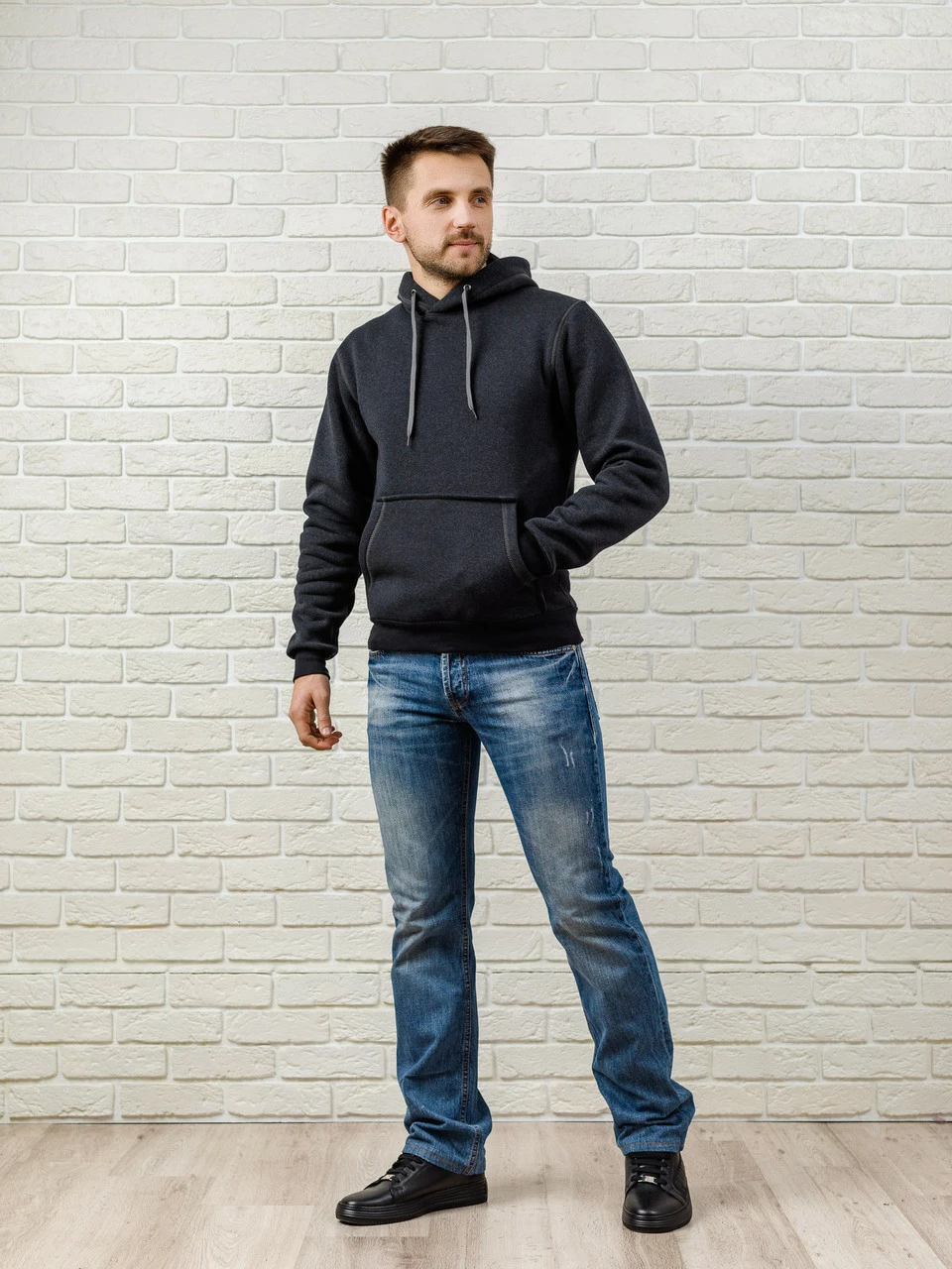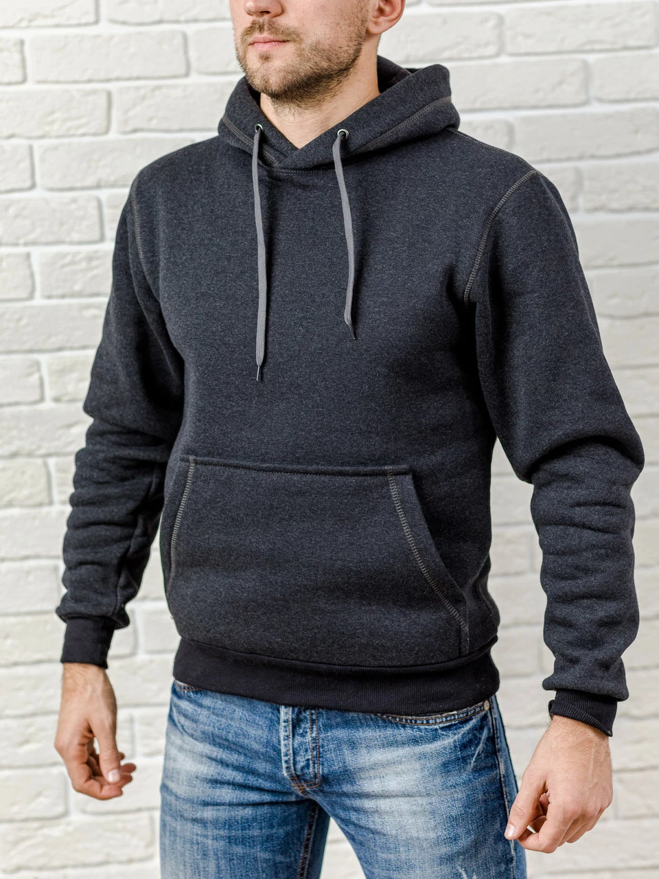 Мужская толстовка с капюшоном, теплая темно-серая худи (антрацит), кофта, кенгурушка / ОСЕНЬ-ЗИМА