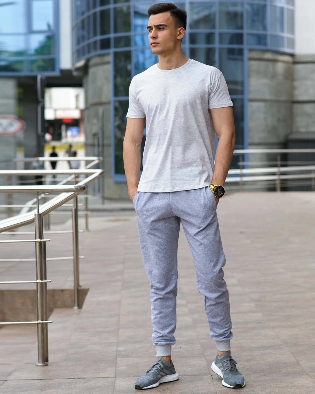 Мужской комплект - серые спортивные штаны и темно-серая футболка (весна/лето/осень)
