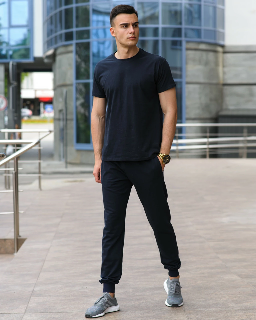Мужской комплект - темно-синие спортивные штаны и темно-синяя футболка (весна/лето/осень)