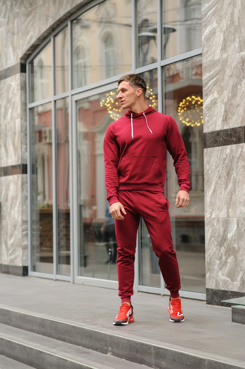 Спортивный костюм мужской весна-лето-осень (бордовая худи + бордовые штаны)