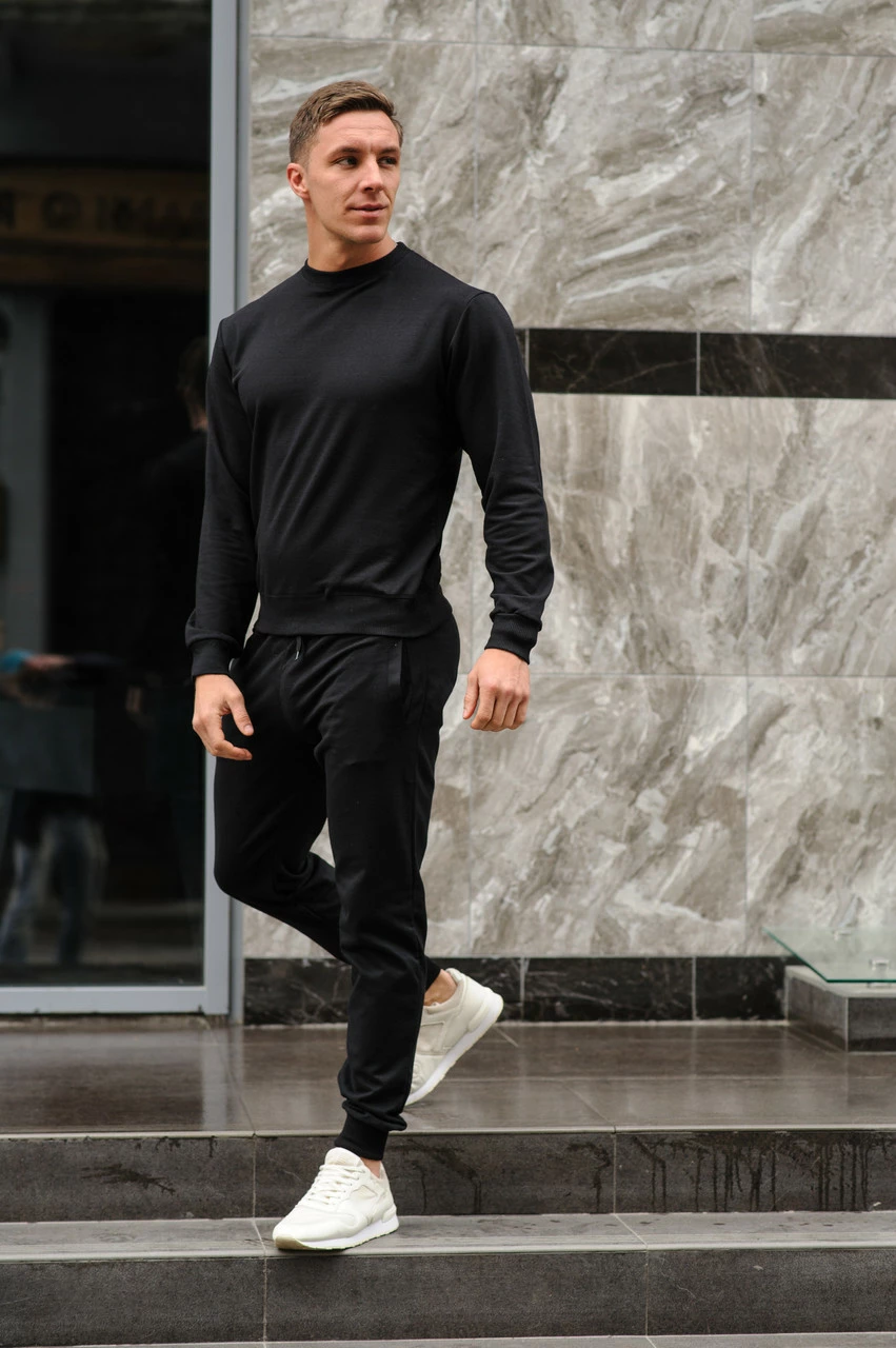Спортивный костюм мужской весна-лето-осень (черный свитшот + черные штаны)