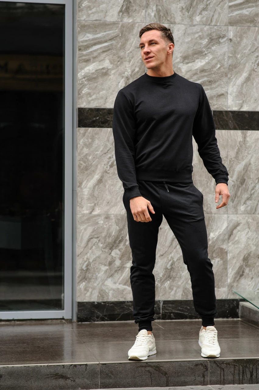 Спортивный костюм мужской весна-лето-осень (черный свитшот + черные штаны)