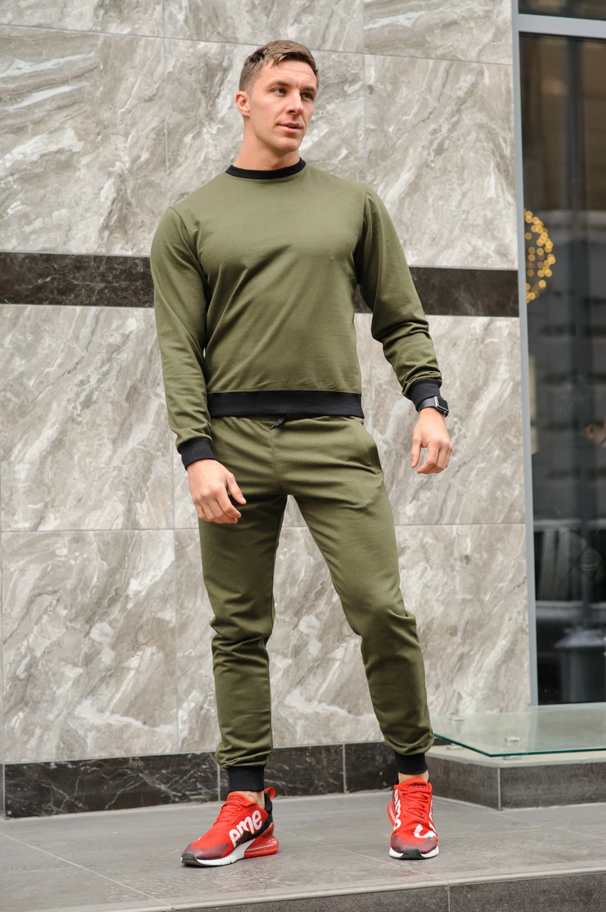 Спортивный костюм мужской весна-лето-осень (хаки свитшот + хаки штаны)