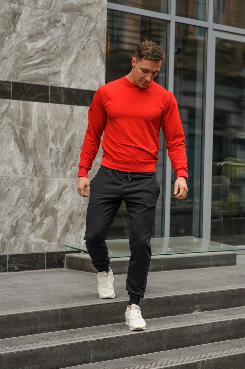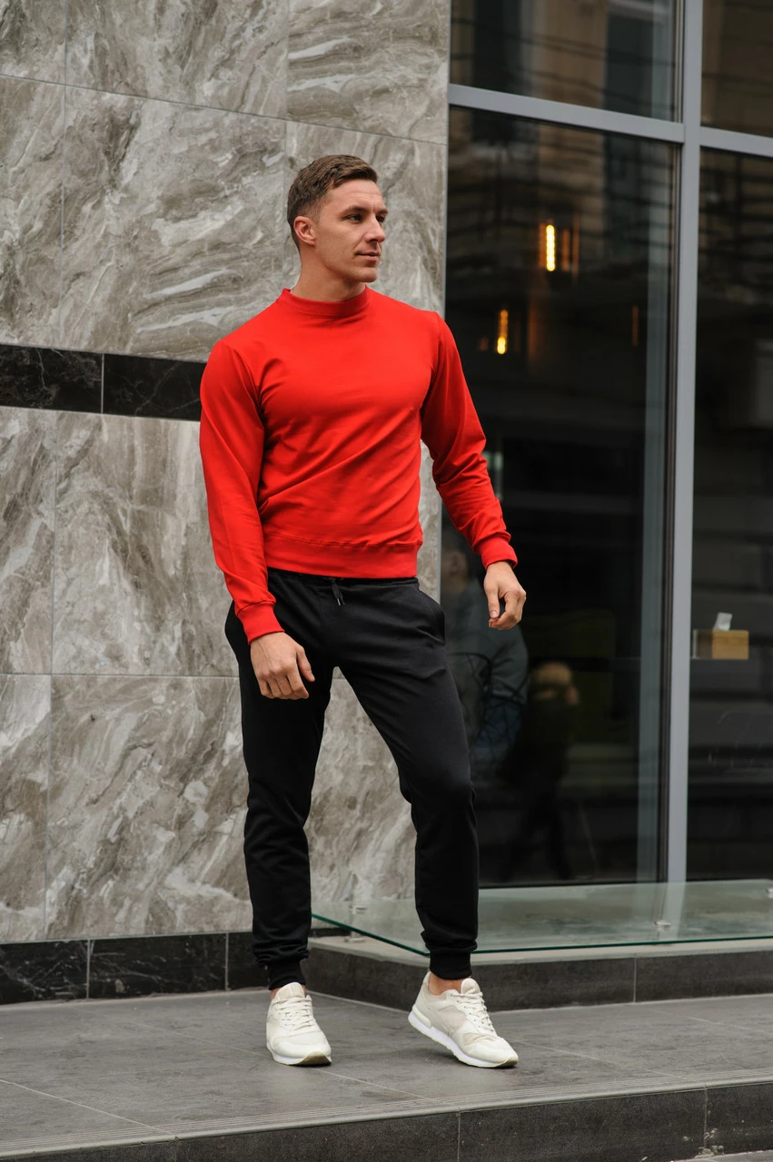 Спортивный костюм мужской весна-лето-осень (красный свитшот + черные штаны)