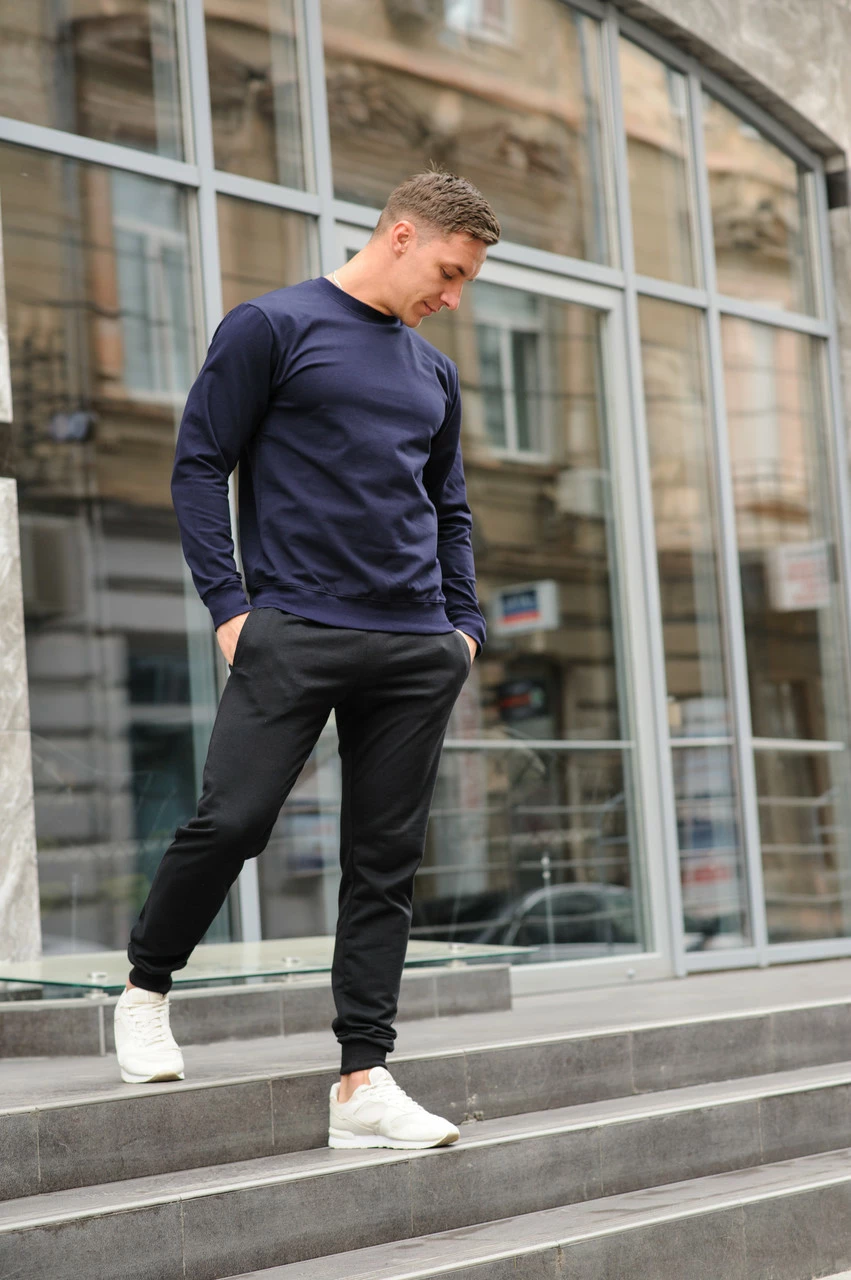 Спортивный костюм мужской весна-лето-осень (синий свитшот + черные штаны)