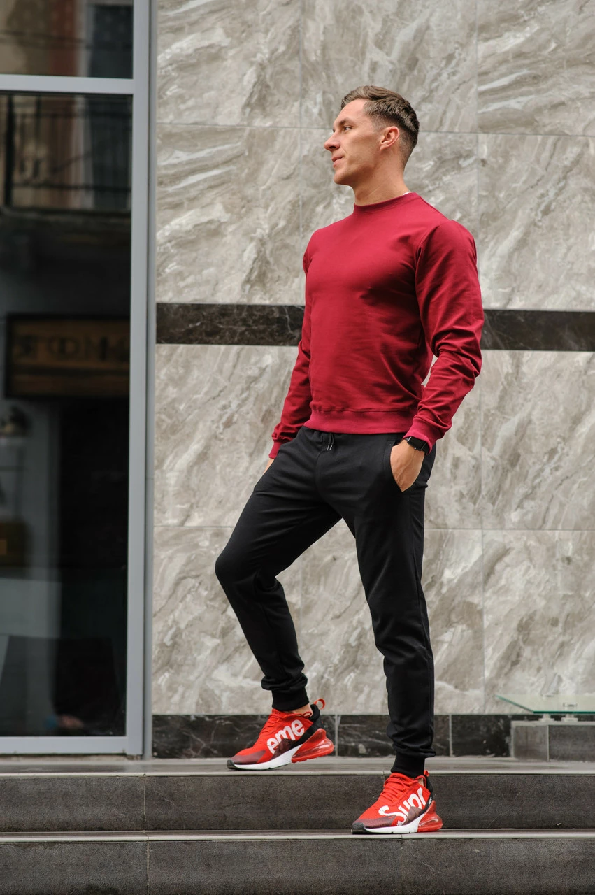 Спортивный костюм мужской весна-лето-осень (свитшот бордовый + черные штаны)