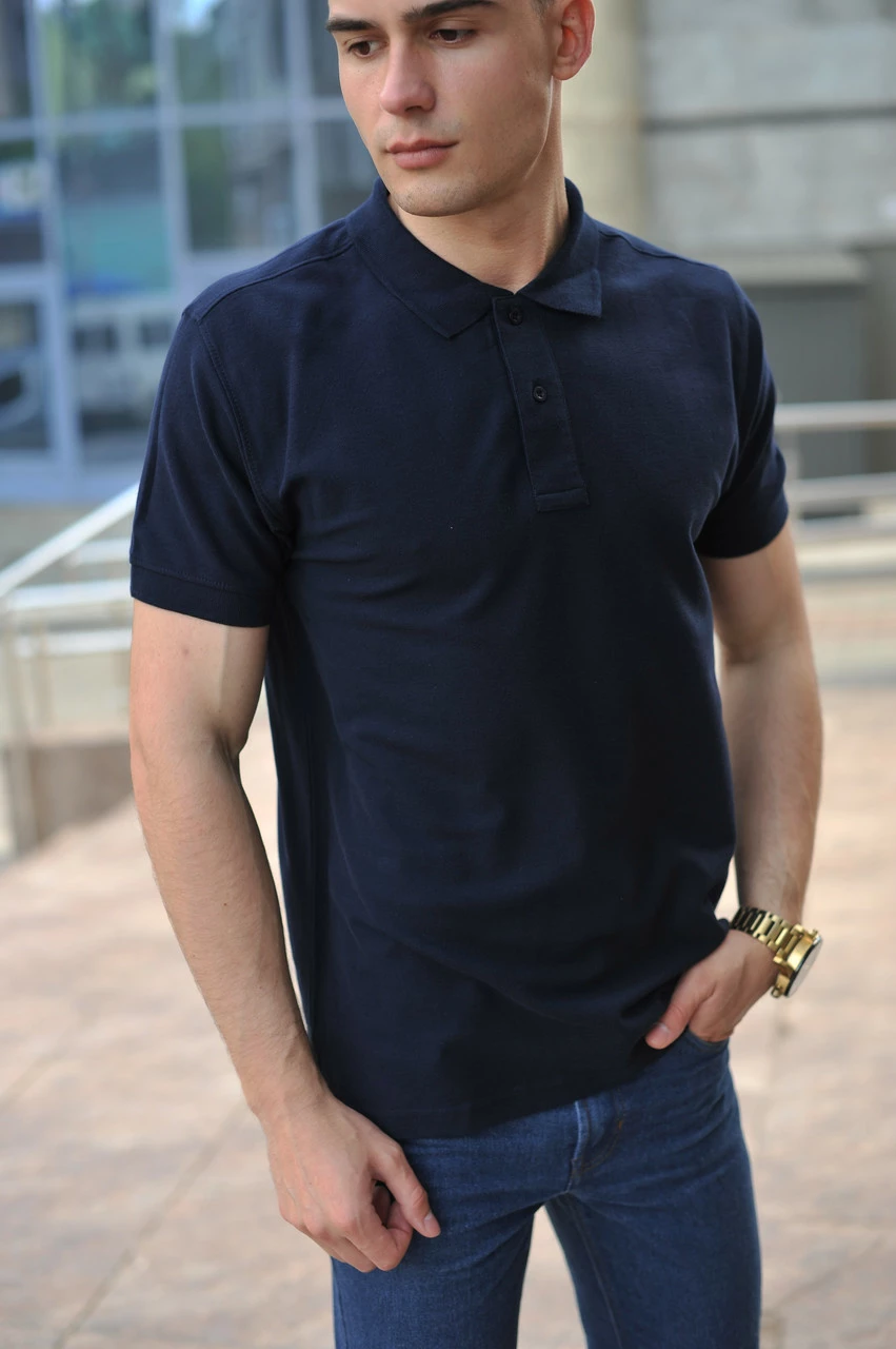 Темно-синяя мужская футболка поло / купить рубашку поло