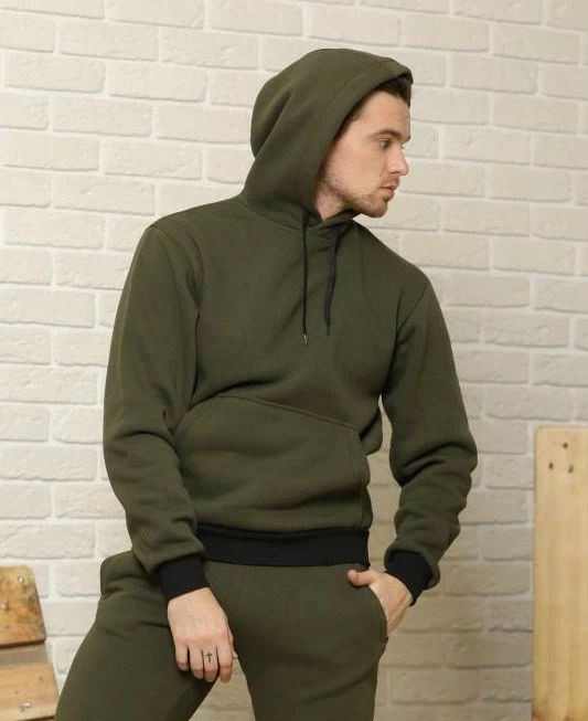 Теплая мужская толстовка хаки (оливковый), худи с капюшоном, кофта, кенгурушка / ОСЕНЬ-ЗИМА