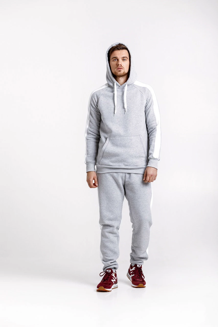 Теплый костюм с лампасами - серая худи с лампасами и серые штаны с лампасами / ОСЕНЬ-ЗИМА