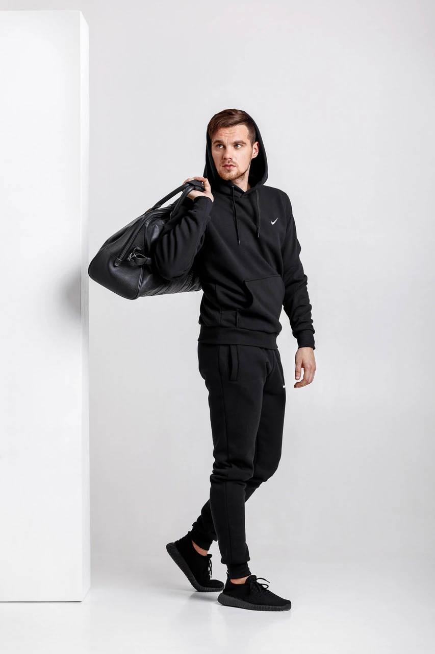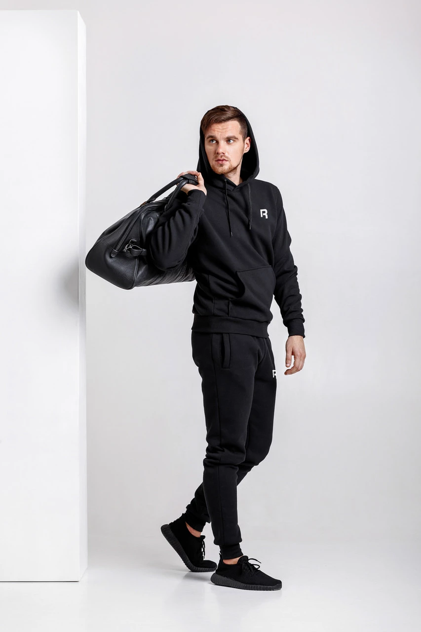 Теплый мужской спортивный костюм, черная худи и черные штаны (с любым значком бренда)