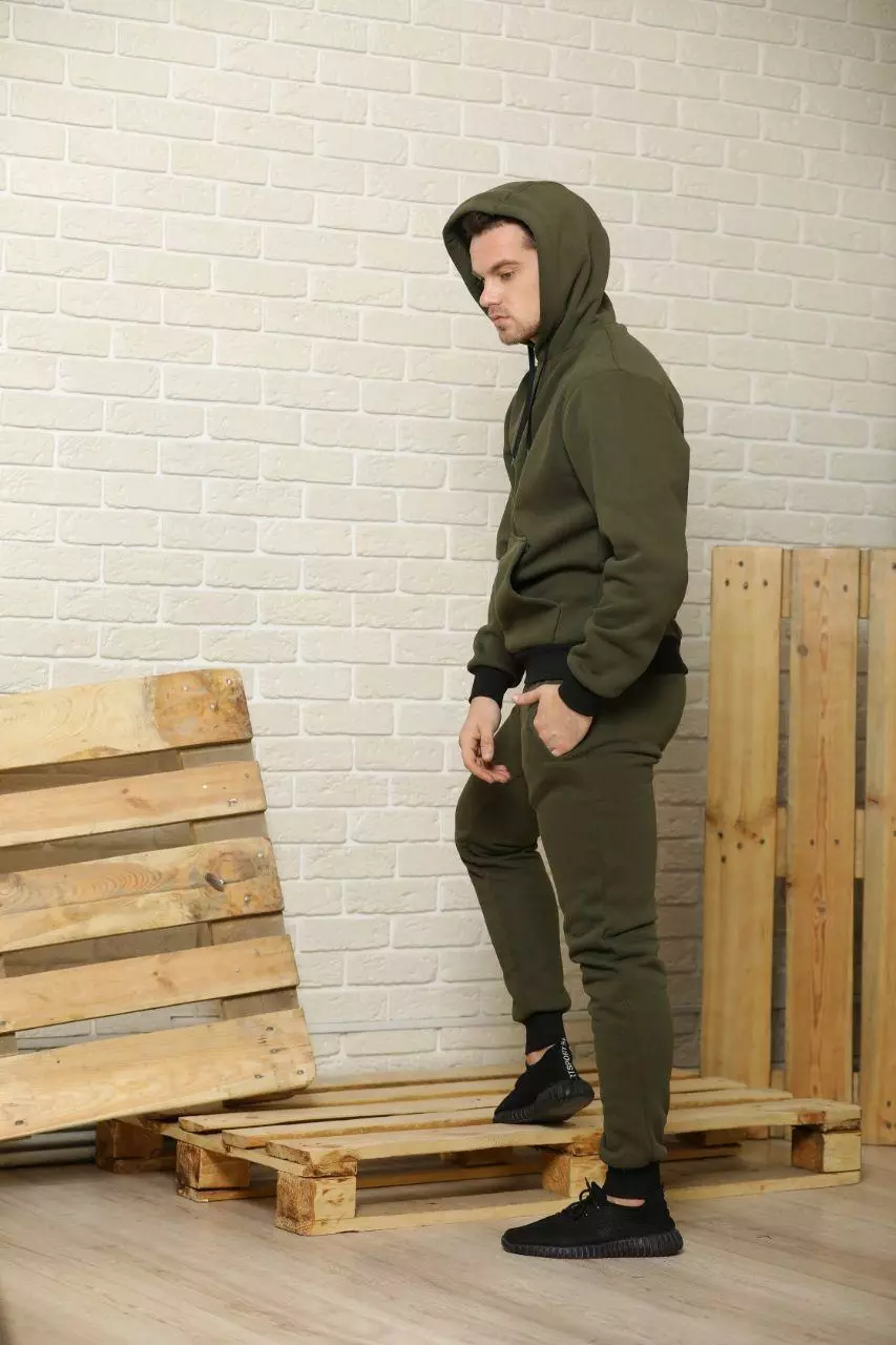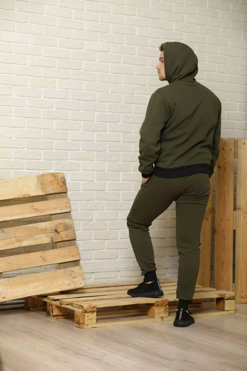 Теплый мужской спортивный костюм хаки (оливковый) / спортивные штаны и худи ОСЕНЬ-ЗИМА