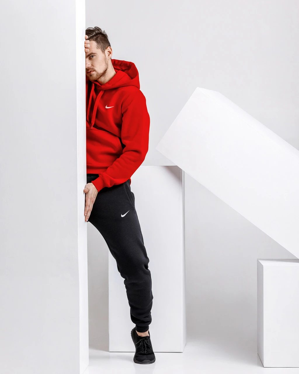 Теплый мужской спортивный костюм, красная худи и черные штаны (с любым значком бренда)