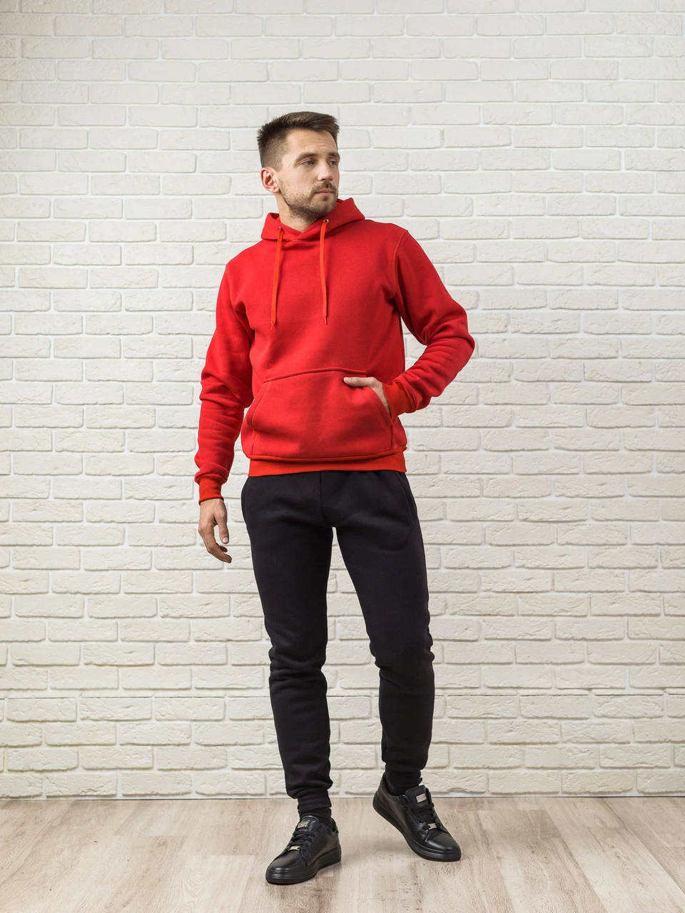 Теплый мужской спортивный костюм, красная худи и теплые спортивные штаны (цвет на выбор)