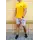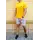 Желтая футболка и светло-серые шорты с брендами (Nike, Adidas, Reebok, Under Armour, Jordan, Fila, Puma)